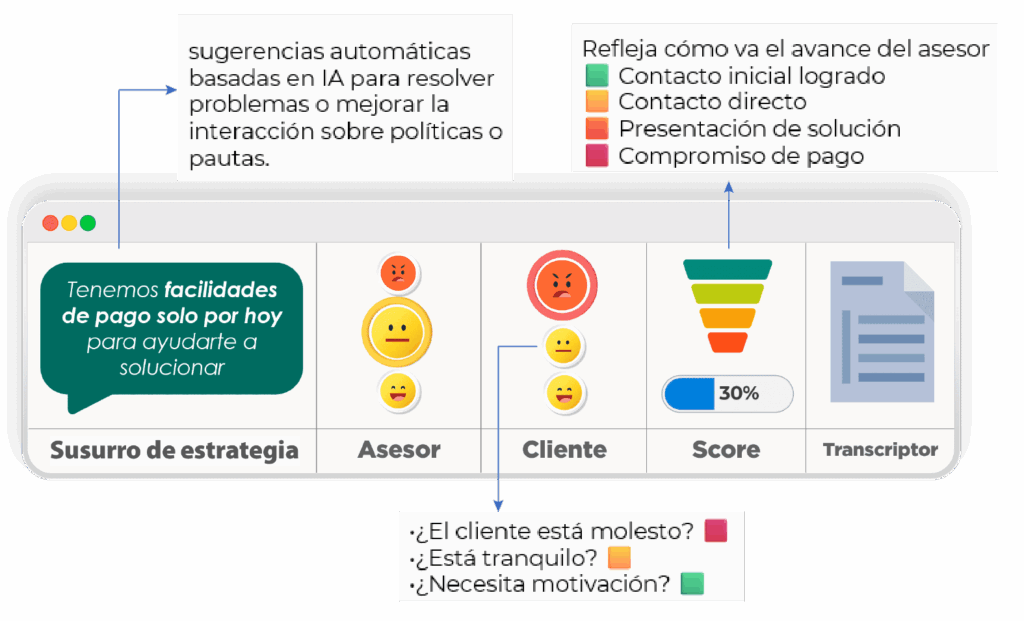 NeuraVox IA utiliza IA y NLP para optimizar llamadas en tiempo real, mejorando la interacción entre asesor y cliente con análisis y sugerencias inmediatas.